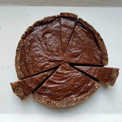 In a food processor, mix the remaining dates with the almond paste, the cacao butter, cacao powder and 1 teaspoon vanilla bean powder until you get a very smooth consistency. Pour over crust and let it harden in the fridge. Voila! That easy!