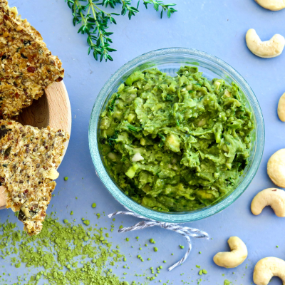 Mix the mung beans until smooth, salt and pepper lightly. In a blender, prepare the pesto including olive oil, corn on the cob, shallots, cashew nuts, thyme. Partially blend mixture so that it is not completely smooth. Combine the pesto with the mung beans, then add the Moringa, finally mix and season with salt and pepper.